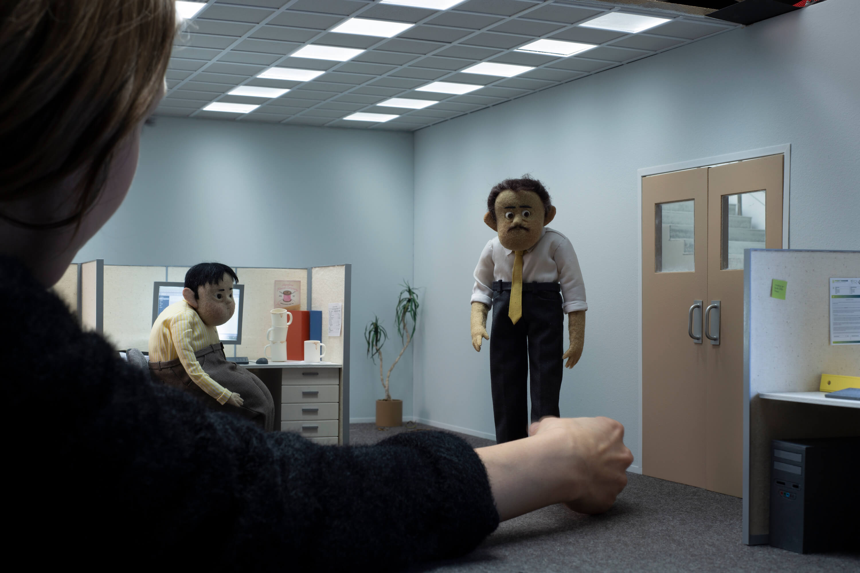 「人々の生活の一部を垣間見ている感覚で観て欲しい。どう感じるか、想像するかは見る側の自由。例えば、このキャラクターの“怒り”の感情はどこからきているのか。それって別に私たちが説明しなくてもいいことなんじゃないかなと思うんだ。きっとキャラクターと似たような感情を、見る側もどこかで持ち合わせているはず。彼のこの“怒り”は仕事からきているのかなとか、そういう風に自分の都合がいいように解釈してもいい。自分のものにして欲しいんだ」。“伝えすぎない”ということもストップモーション作品のひとつの技であり、特徴なのではないだろうか。